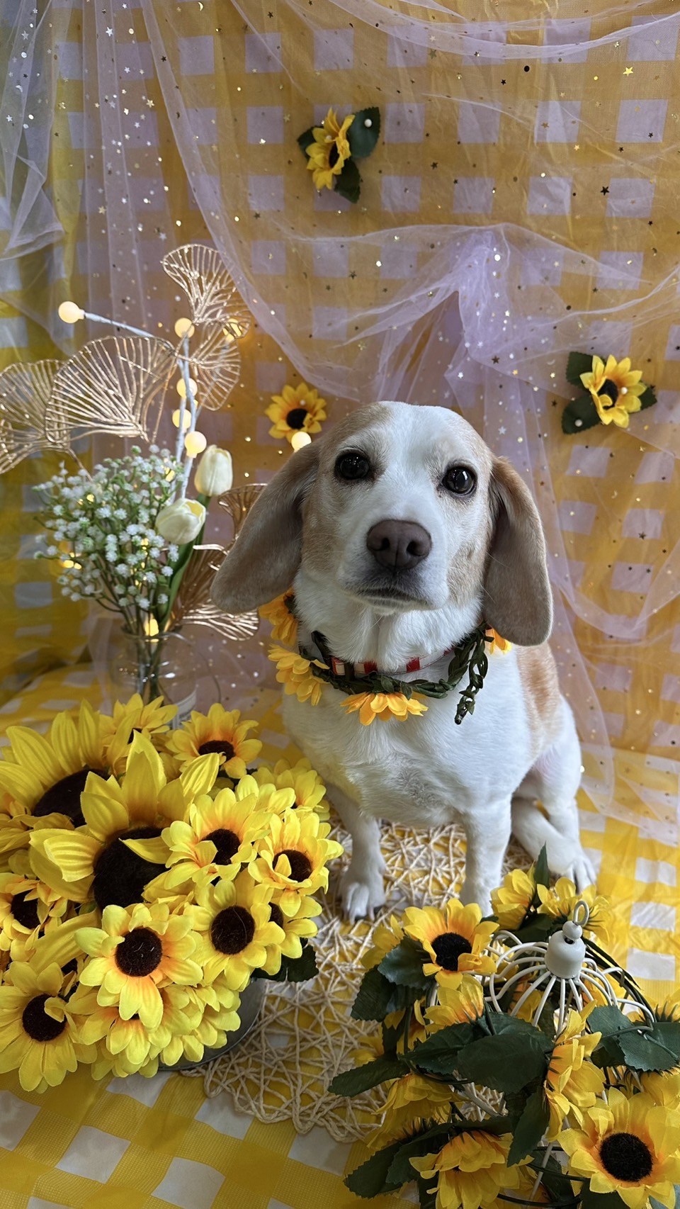 可愛い小物に囲まれたわんちゃんは、まるで絵本の主人公のような仕上がりに!
